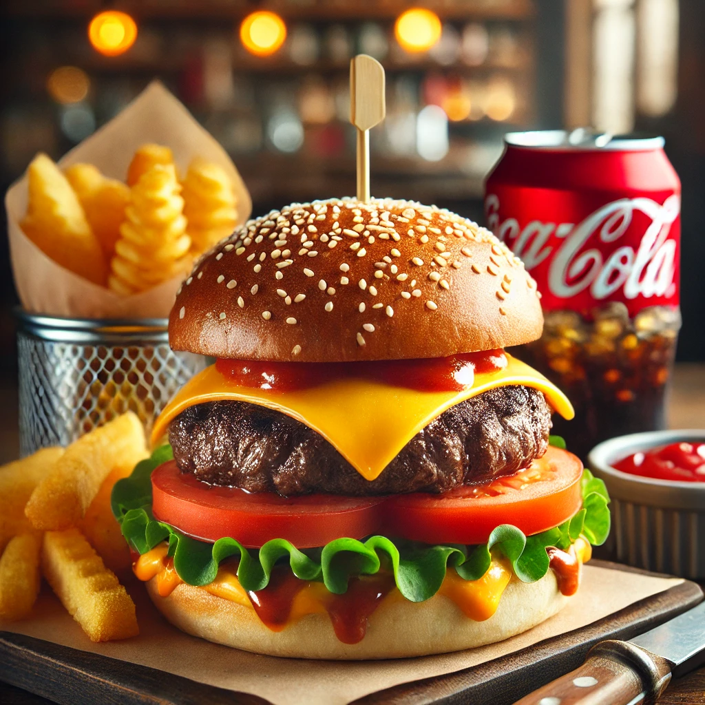 Sauce au choix, salade, tomate, oignons, steak haché façon bouchère, bacon, fromage